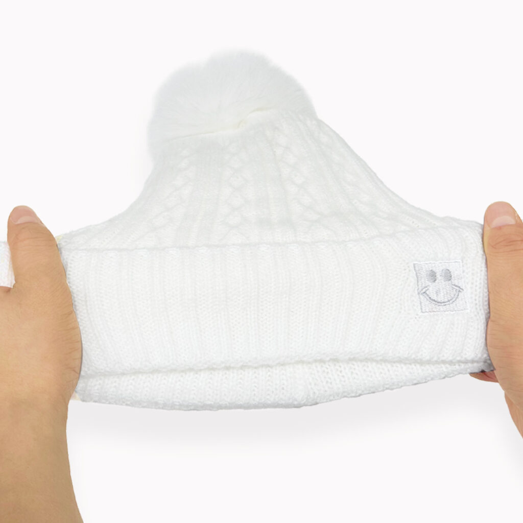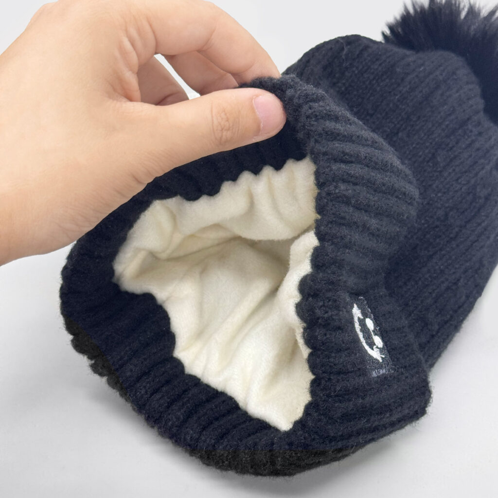 やわらかく伸びる編み地が、頭をやさしく包み込みます。